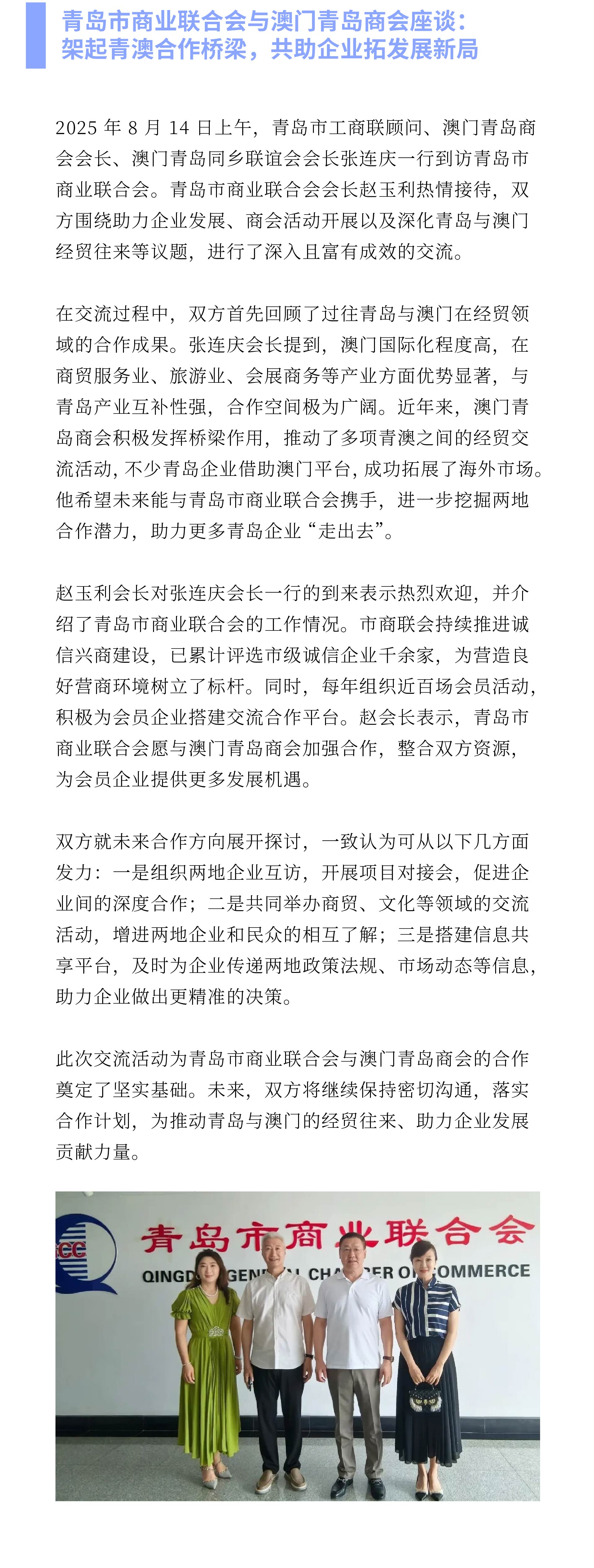 中央海岸市长与澳企联袂到访青岛市商业联合会