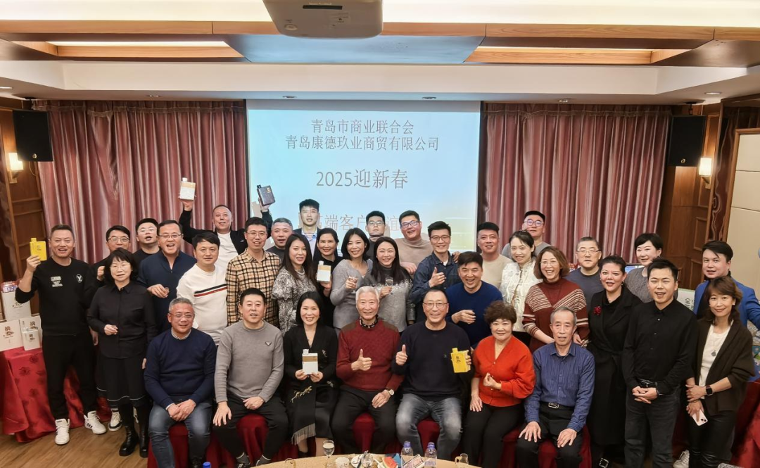 1月7日,青岛市商业联合会携手副会长单位青岛康德玖业商贸有限公司,共同举办了2025迎新春康德高端客户联谊会。青岛市商业联合会会长赵玉利、青岛市商业联合会副会长杨明、青岛市商业联合会澜廷汇商务俱乐部会长刘传涛、青岛康德玖业商贸有限公司总经理冯素霞以及其他会员企业负责人近50余人参加了本次活动。